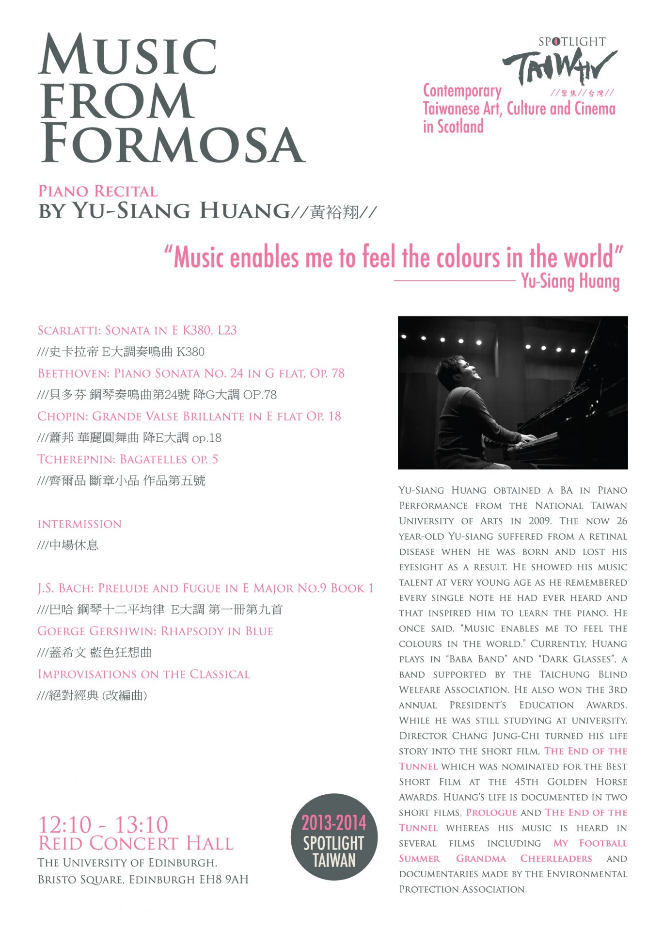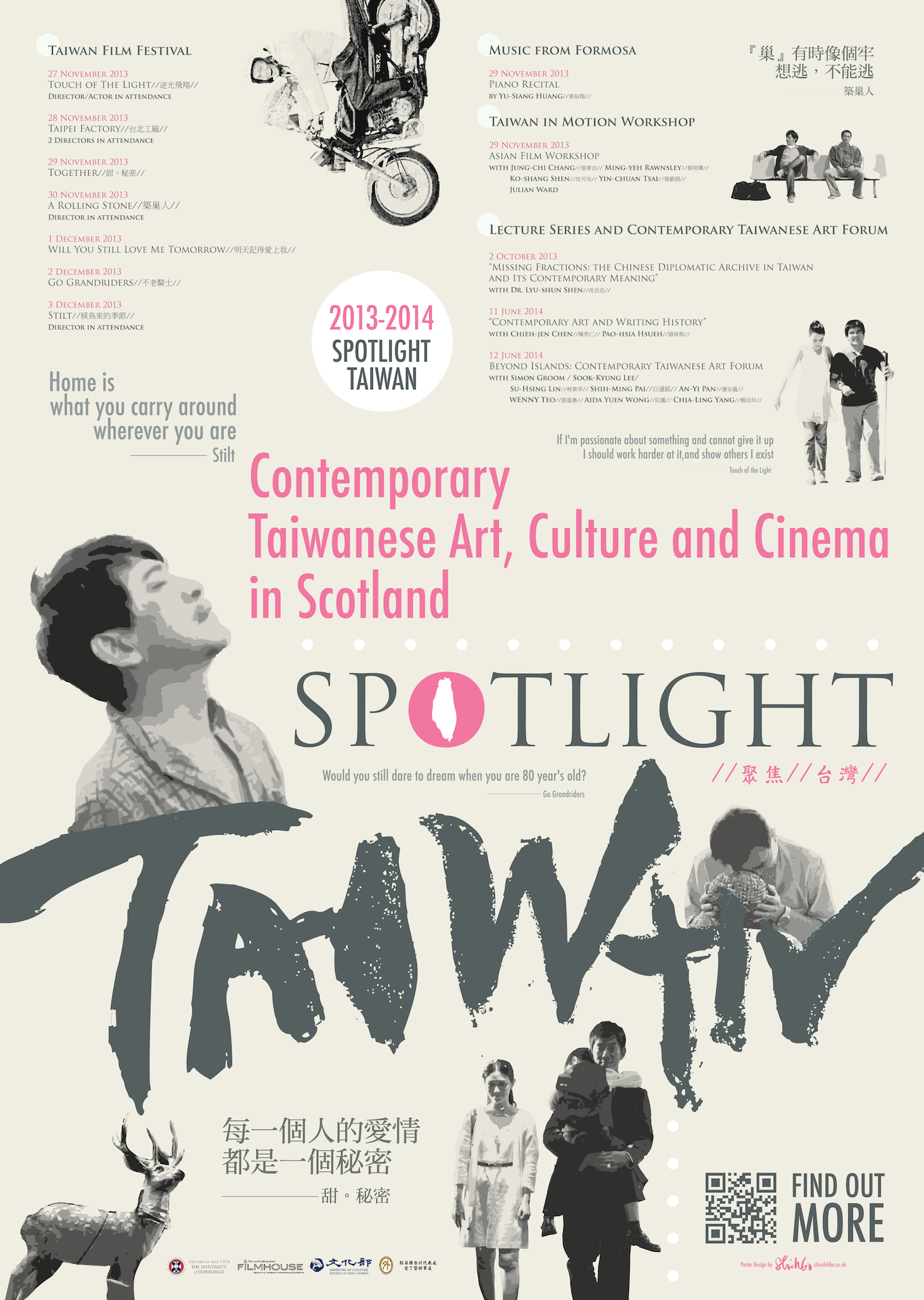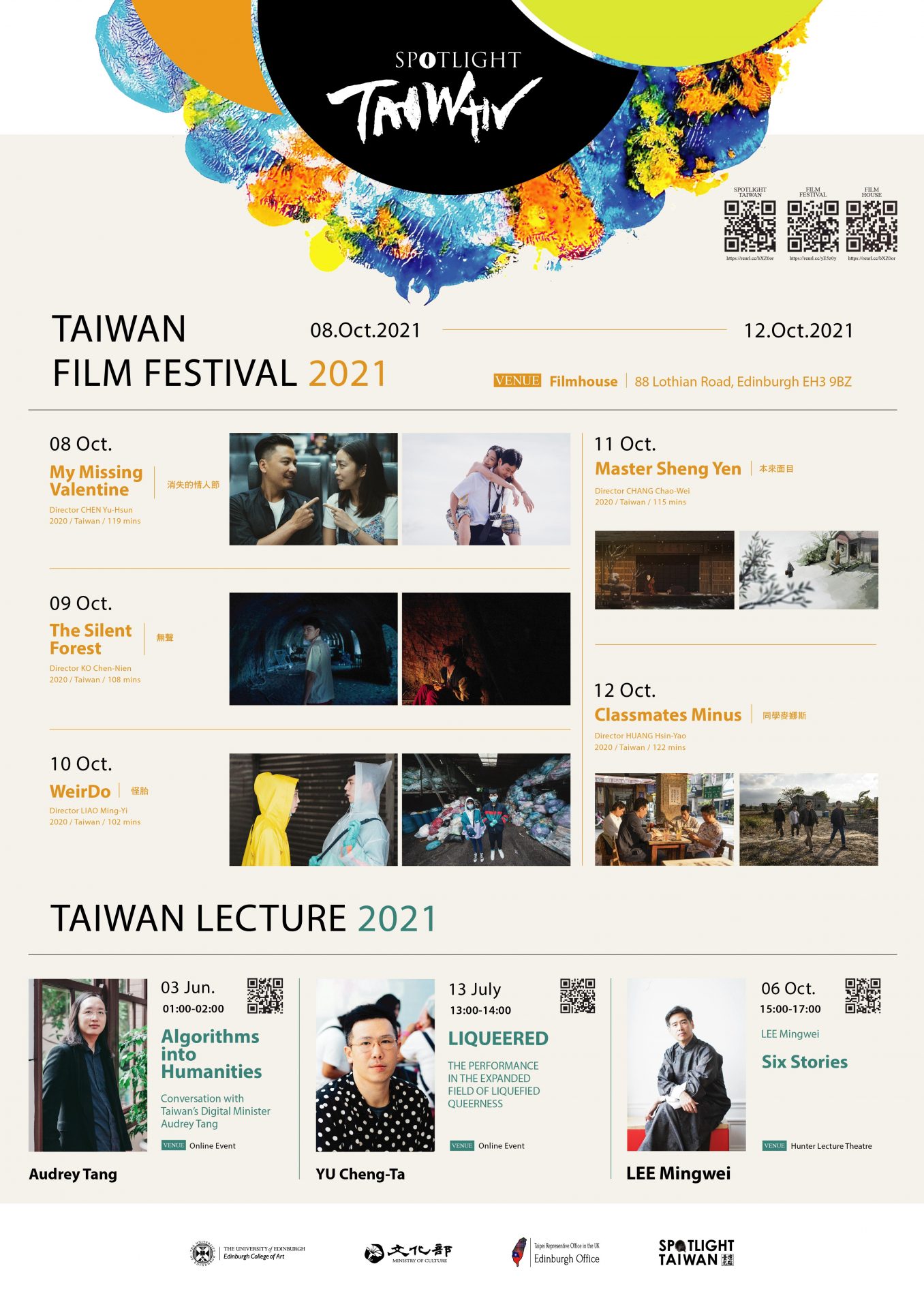 Programme 2025 2024 2023 2022 . Tehching Hsieh 2022 Spotlight Taiwan Filmfest Pei-hsin Cho and Su-Hsing Lin 2021 2021 Spotlight Taiwan Film Festival & Lectures Audrey Tang Yu Cheng-Ta Lee Mingwei 2020 2020 Spotlight Taiwan Film Festival & Poster Kao Chien-Hui Yuan Goang-Ming 2019 2019 Spotlight Taiwan Film Festival & Poster Shu Lea Cheang Ava Hsueh 2018 Wu Tzu-Ning Lin Ching-Hsuan 2017 Wu Mali Symposium 2017 Taiwan Showcase & Spotlight Taiwan poster 2015 Wang Jun-Jieh & Felix Schoeber 2013 – 2014